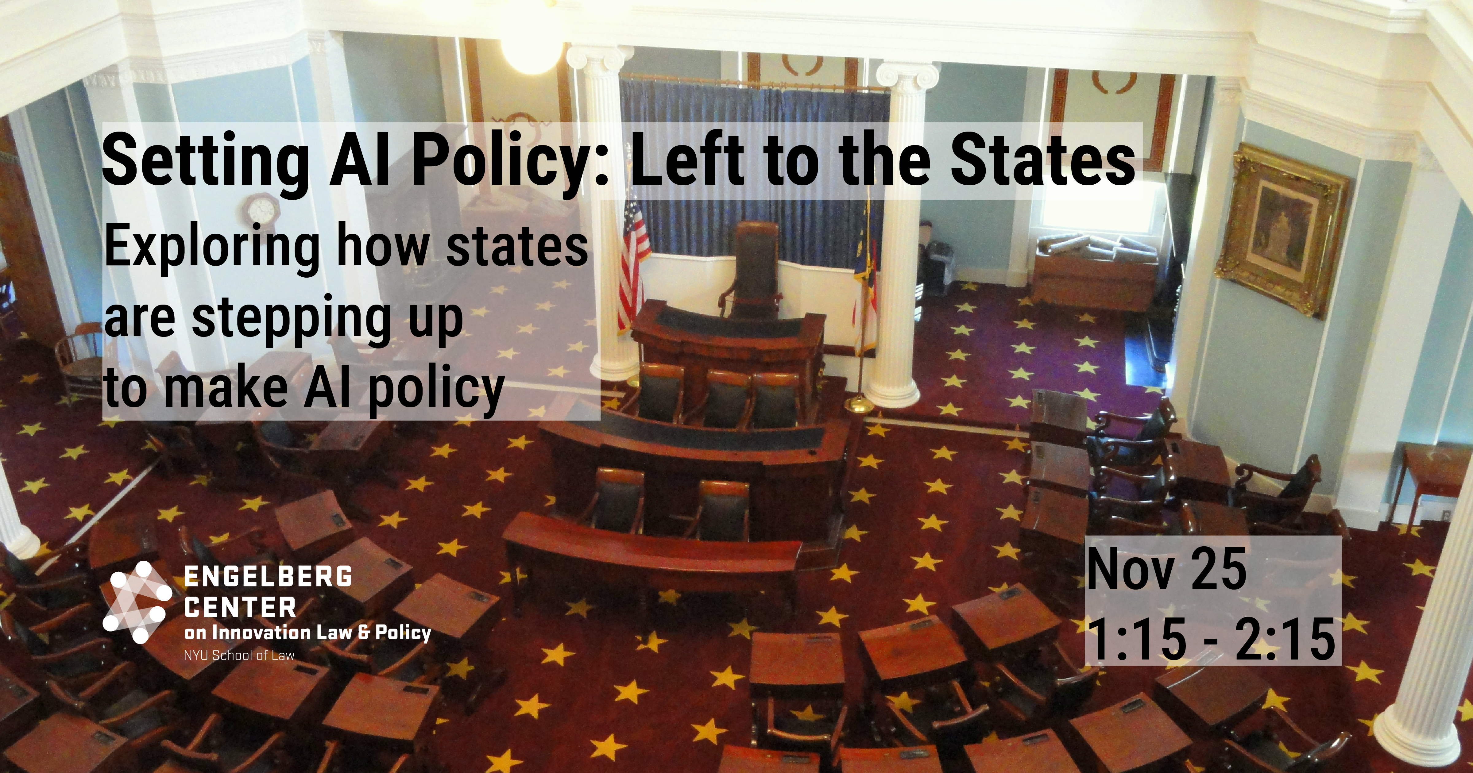 The State Government Initiative, the Engelberg Center on Innovation Law & Policy, Rights Over Tech, and the Public Interest Law Center are excited to host a panel discussion: “Setting AI Policy: Left to the States.” The panel will discuss how decisions shaping AI policy are being left to the states, and how state governments are stepping up to make these important policy decisions.